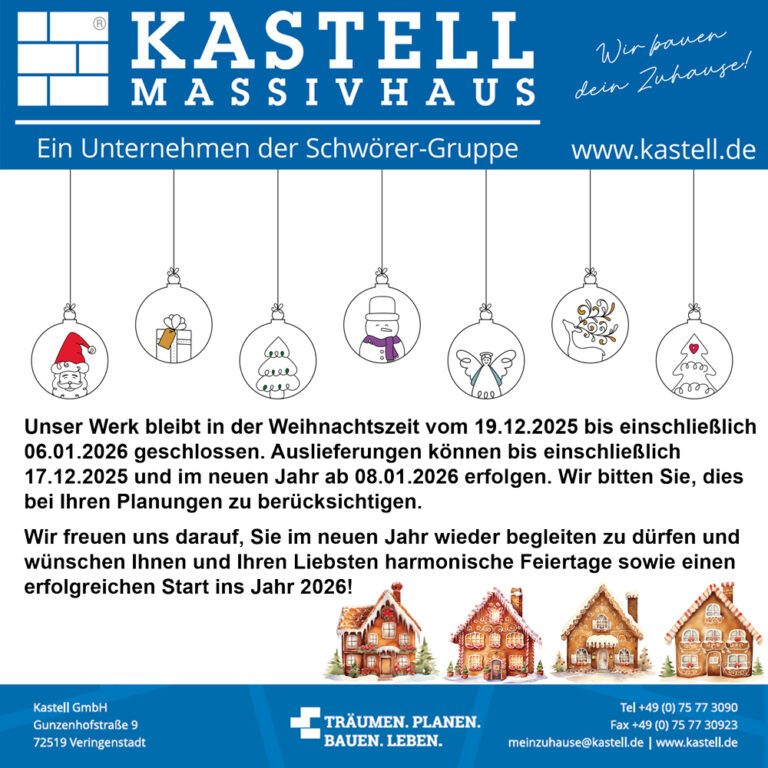 Hier ist immer was los. Schauen Sie regelmäßig vorbei, denn bei KASTELL AKTUELLES finden Sie zentral die aktuellsten Nachrichten wie Stellenausschreibungen, Aktionen, Bau-Info-Tage. Messen, neue Produkte, Leistungen und vieles mehr. Wir freuen uns auf Sie!