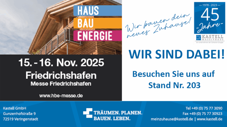 Besuch uns am 15.11. und 16.11.2025 auf der Messe HAUS BAU ENERGIE in Friedrichshafen, wir sind auf Stand Nr. 203.Deine Bauberater Thomas Kram freut sich
