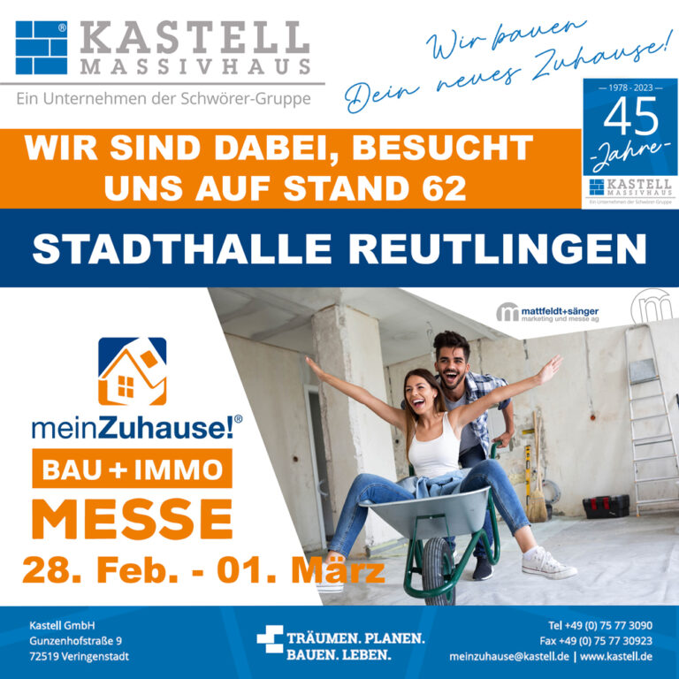 Wir planen und bauen ganz nach deinen persönlichen Vorstellungen, Wünschen, Bedürfnissen und deiner Lebensplanung.Besuche uns vom 28.02. – 01.03.2026 auf der Messe meinZuhause! in Reutlingen,